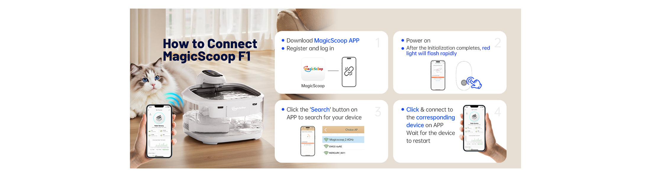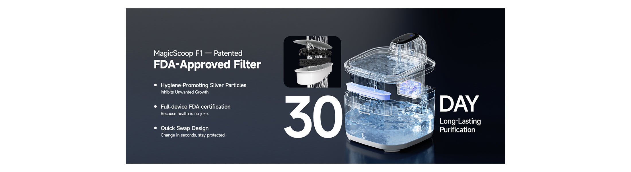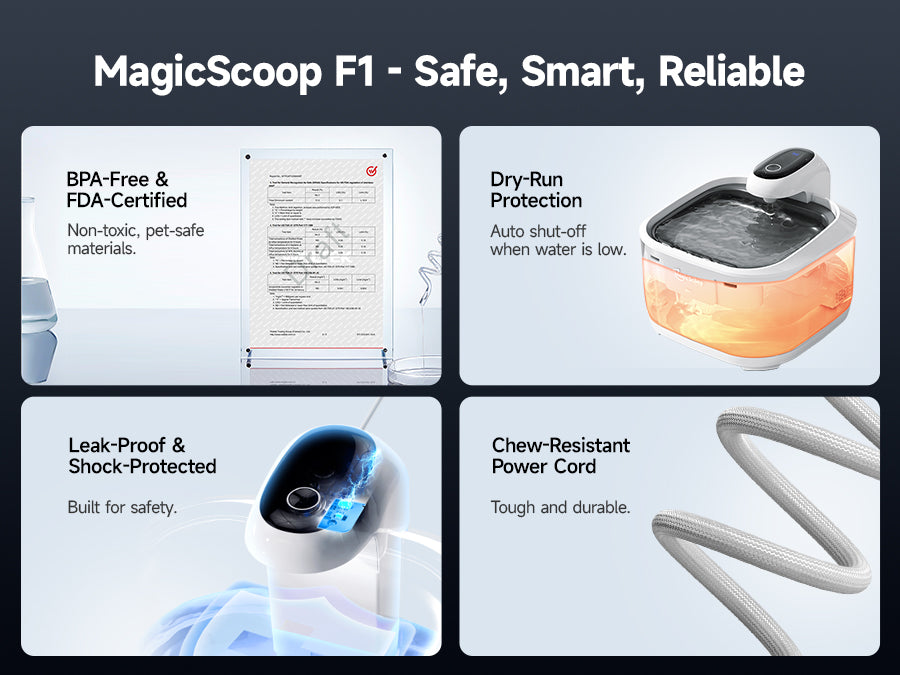 Thanks for choosing MagicScoop! Below are some frequently asked questions about the F1 Smart Pet Water Fountain. If you have more questions, feel free to reach out — your feedback helps us get better.