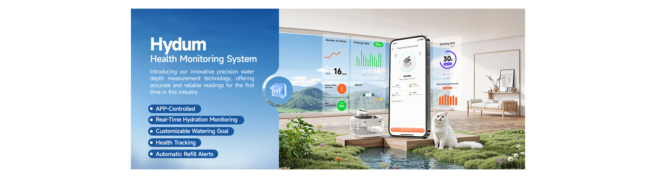 - Real-time water level and drinking data tracking via app